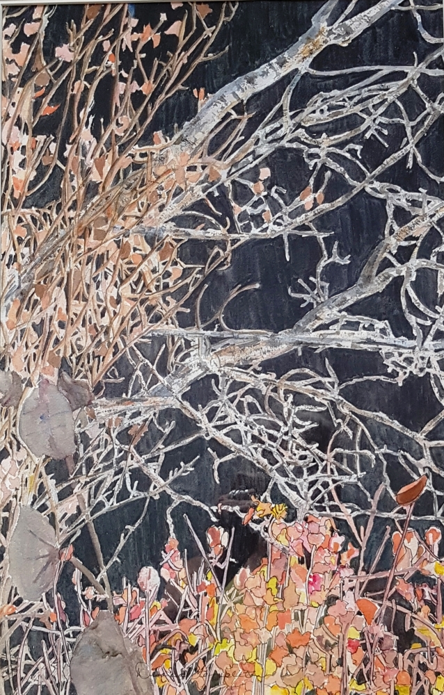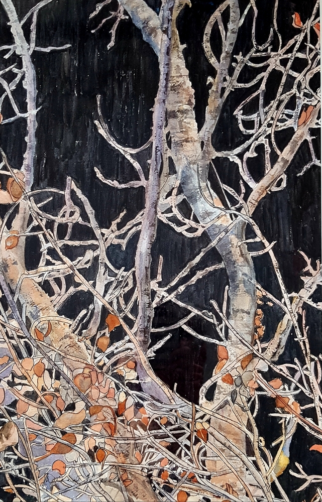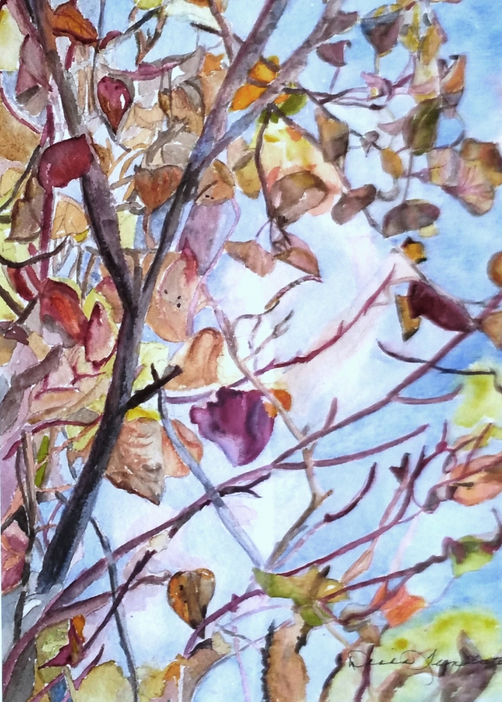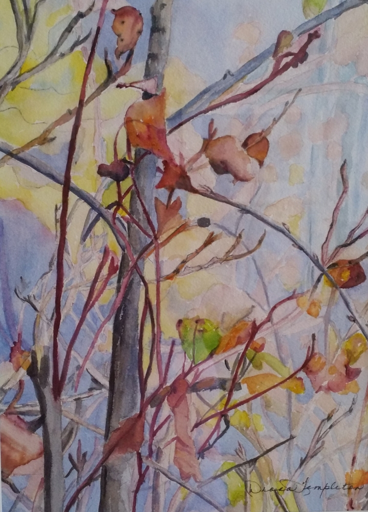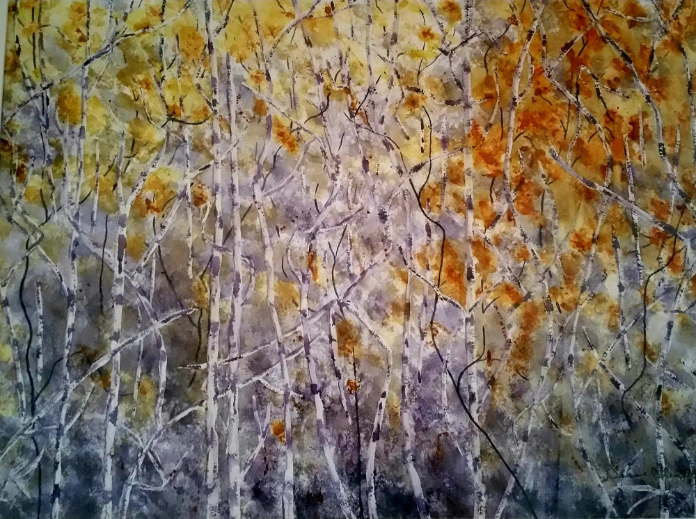 I originally started my artistic journey learning to paint Landscapes in Watercolours. I loved it, from trees, lakes, skies, to the reflections in water. I enjoyed weekend retreats at Strawberry Creek and was totally immersed in taking 100’s of pictures as references to paint the beauty of the fall colours in our great outdoors.